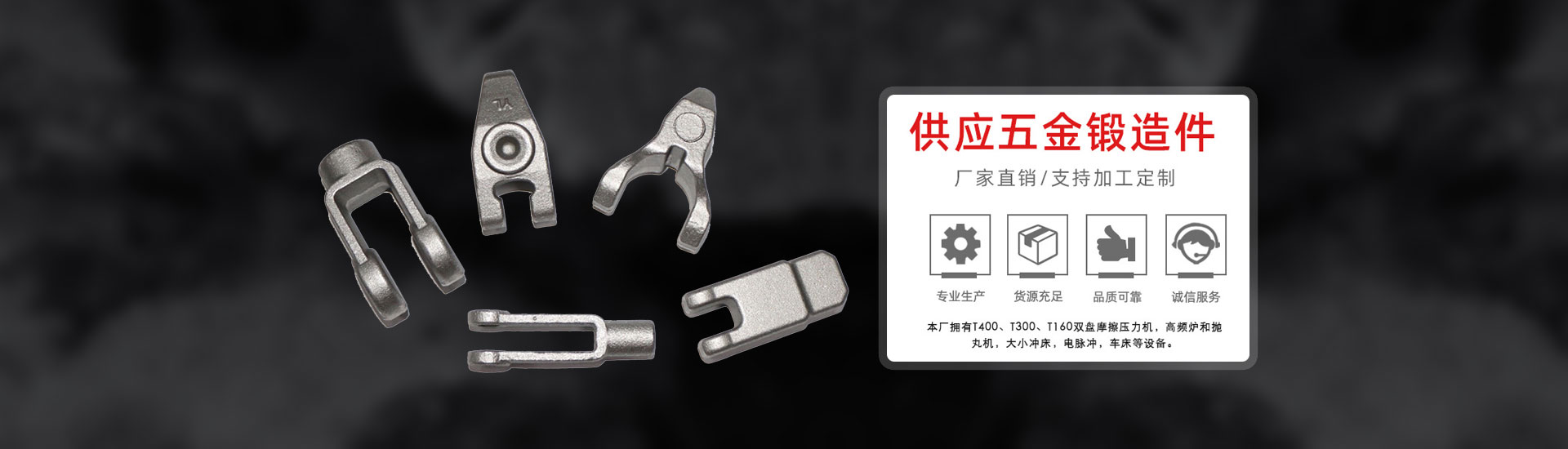公司位于浙江省東南沿海歷史文化名城一-臺(tái) 州臨海市杜橋鎮(zhèn),是一家專業(yè)生產(chǎn)各類金屬鍛件,寧波鍛造加工、臺(tái)州鍛造加工的企業(yè),本廠擁有630噸摩擦壓力機(jī)1臺(tái)、400噸摩擦壓力機(jī)1臺(tái)、300噸摩擦壓力機(jī)3臺(tái)、160噸摩擦壓力機(jī)5臺(tái)、160噸電動(dòng)螺旋壓力機(jī)5臺(tái)、新產(chǎn)品開發(fā)技術(shù)師傅10個(gè)、員工80個(gè)。專業(yè)的設(shè)備配合效率快的輸送帶流水線及良好的鍛造技術(shù)得出高品質(zhì)的產(chǎn)品,效率快、低成本是我們的競爭優(yōu)勢(shì),我們憑此條件在高度競爭的市場(chǎng)與客戶共成長。 公司全體員工,始終堅(jiān)持以真誠的態(tài)度,嚴(yán)謹(jǐn)?shù)纳a(chǎn)控制,提供可靠產(chǎn)品及良好的客戶服務(wù),我們以滿足客戶的需求為方針,以“誠信服務(wù)、質(zhì)量可靠、交貨及時(shí)、價(jià)格合理”的原則與客戶維持深厚的關(guān)系,竭誠歡迎國內(nèi)外客商垂詢指導(dǎo),互惠往來,共創(chuàng)雙贏。